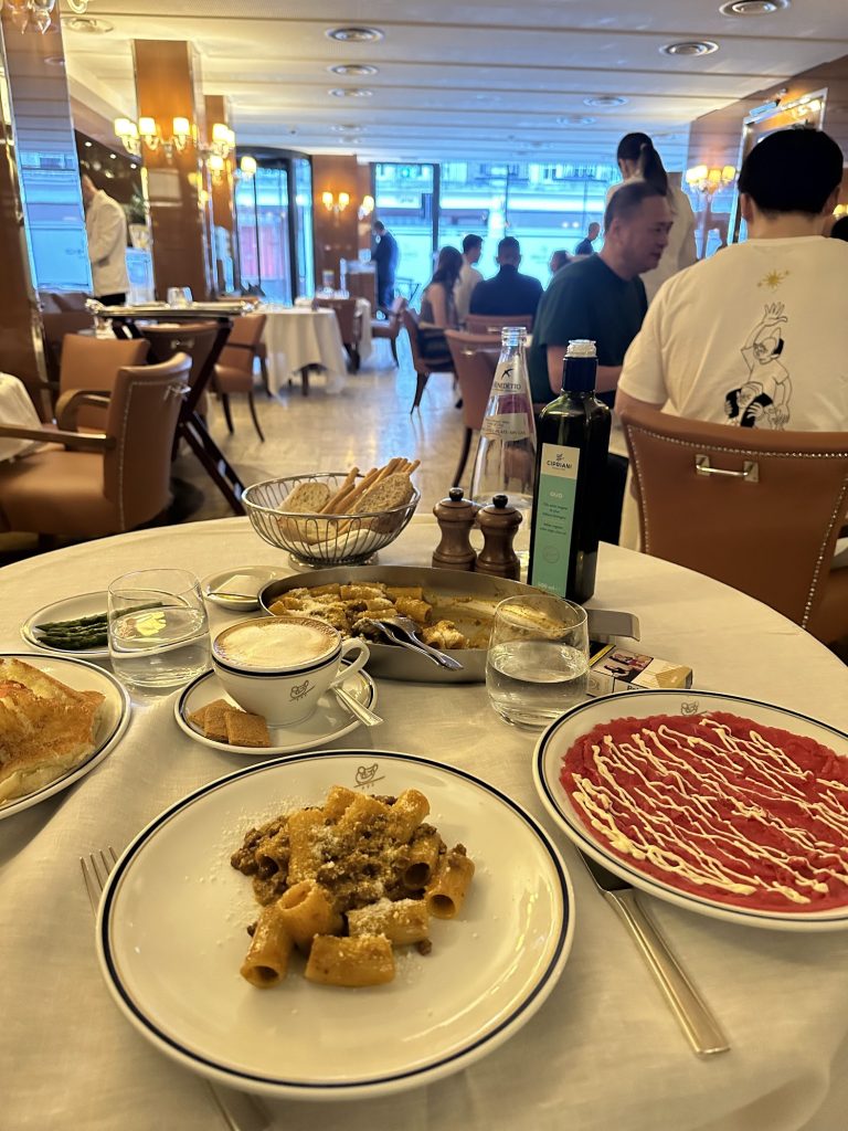 Rigatoni alla Bolognese at £43 simmers slow, meat sauce thick on tubes. Tagliardi with veal ragu matches at same, finer mince. Depth builds over bites, parmigiano grated tableside. No shortcuts in the simmer, observers confirm.